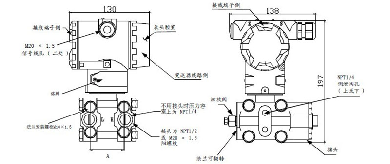 1.防止變送器與腐蝕性或過熱的補測介質(zhì)相接觸 2.要防止渣滓在導壓管內(nèi)沉積 3.導壓管要盡可能短一些 4.兩邊導壓管內(nèi)的液柱壓頭應保持平衡 5.導壓管應安裝在溫度梯度和溫度波動小的地方 6.防止引壓管內(nèi)結(jié)晶或低溫結(jié)冰 7.請勿將排氣/排液閥全部擰開,以免密封鋼珠掉落