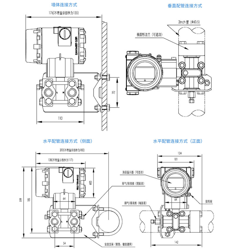 ●先進的單晶硅壓力傳感器技術與專利封裝工藝,精心研制出的一款國際領先 技術的高性能壓力變送器 ●雙膜片過載結構,從容應對高過載考驗 ●用集成電路與表面封裝技術的信號變送模塊,性能強大的24位ADC實現高精 度與快速應答 ●顯示模塊可355°旋轉,按鍵參數操作功能友好 ●按鍵參數設置不影響電氣防護等級,更安全、更快捷 ●高性能Focbar單晶硅壓力變送器,國際領先技術與中國智造的完美結合 ●堅固優質的不銹鋼過程法蘭,臻厚的加強結構,堅不可摧,高靜壓、高過載 的強大保障