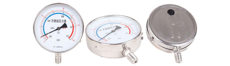 不銹鋼壓力表采用直接接觸式接頭和感壓元件材料,采用icr18Ni9T、Ocr18Ni12Mo2Ti、 sus316,結構為全密封型,不銹鋼壓力表具有較強的防被測介質腐蝕和抗環境腐蝕的能力。不銹鋼壓力表適用于腐蝕性較強的適合不銹鋼元件檢測的介質和惡劣的外部腐蝕環境中 ,不銹鋼壓力表廣泛應用于石油、化工、冶金等工業。