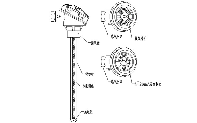 四線制:熱電阻產品給出了四根引線,這種方法可以完全消除引線電阻對測量結果的影響,測量精度高,一般只適應于精密測量,如標準鉑電阻溫度計。