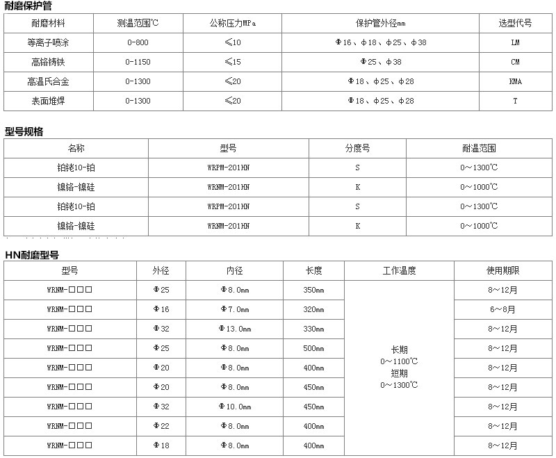 最新研制的新型耐磨熱電偶采用等離子噴涂技術、高鉻鑄鐵和高溫合金不同材料制成的耐磨保護管,專門為高、中、低溫耐磨環境的測量場合設計制造的,可適用于循環硫化床、沸騰爐、水泥回轉窯尾煙室、煤粉爐、球磨機等工業現場,采用鎧裝或高溫鎧裝芯體,配以不同材質及規格的耐磨套管,耐磨損、耐震動、抗熱震性能好,在各種磨損程度極高的惡劣場合中產品的使用壽命可達普通產品的幾倍之高,大大提高了生產效率,降低成本消耗。采用特種耐熱和耐磨合金材料作為測溫外保護管兼耐磨頭,內裝鎧裝芯體,既能具有較高的對粉煤灰顆粒沖刷的耐蝕性能,又能在高溫條件下對內芯體起到良好的保護作用。采用法蘭或螺紋連接形式,能長期在0~1200℃之間進行溫度測量,是冶金業運用于高溫、耐磨環境中十分理想的溫度傳感器。