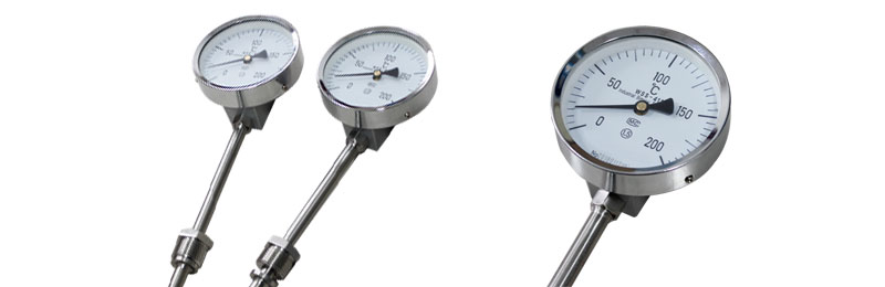 ●現場顯示溫度,直觀方便 ●安全可靠,使用壽命長; ●抽芯式溫度計可不停機短時間維護或更換機芯。 ●軸向型、徑向型、135º型、萬向型等品種齊全,適應于各種現場安裝的需要。